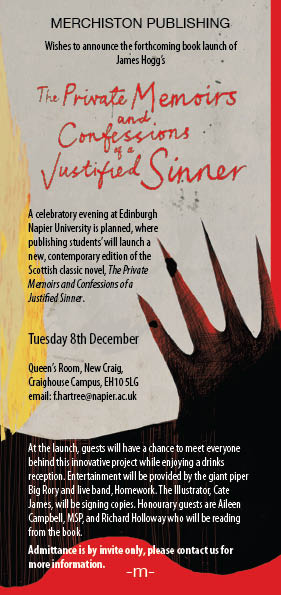 On Tuesday 8 December, Big Rory will pipe guests into the launch of our new, contemporary version of James Hogg’s classic book: The Private Memoirs and Confessions of a Justified Sinner. Watch this space…!