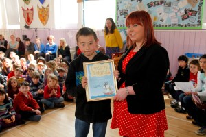 It was the day when Ben Lewis, a primary five pupil at Stockbridge Primary School, was awarded his prizes for winning our ‘Treasure Island: A Play‘ Book Cover Design Competition.