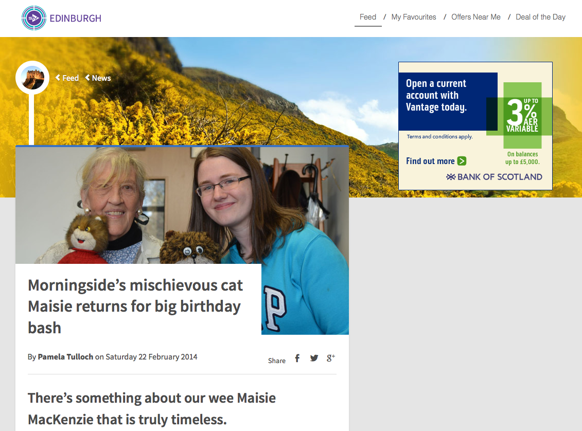 Edinburgh’s favourite cat has hit the big time news! Read all about Maisie’s latest adventure in STV’s article, featuring an interview with Project Manager, Eve Scott. http://edinburgh.stv.tv/articles/264945-merchiston-publishing-to-celebrate-morningside-maisies-30th-anniversary/