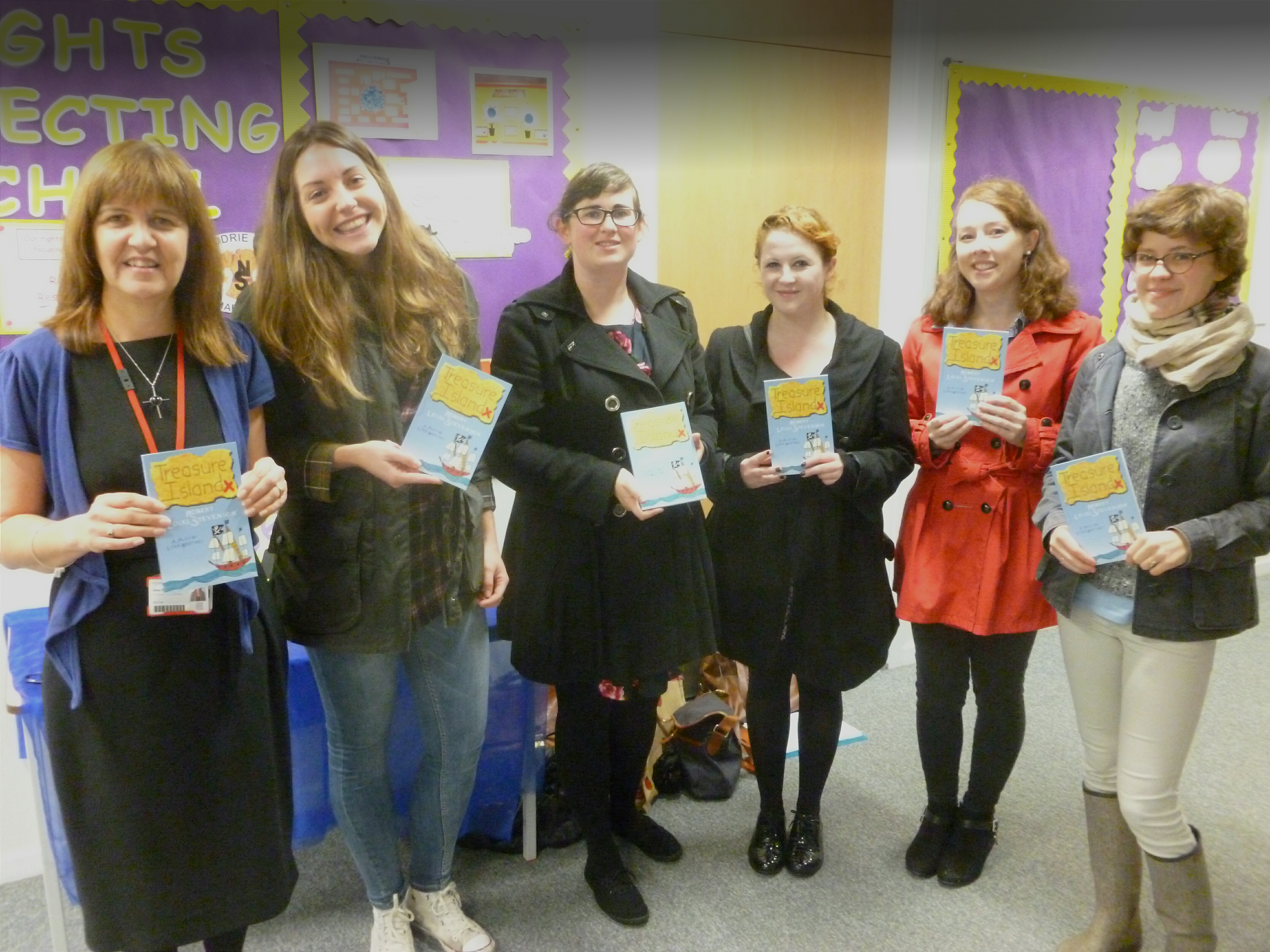 At the beginning of the Books for Schools Initiative the class was separated into groups and each group then assigned a different area of Edinburgh. Our group was given Niddrie and Craigmillar. We researched the schools in these suburbs and eventually chose Niddrie Mill Primary School. After contacting Niddrie Mill we found that some copies of Treasure Island: A Play by Lynn Brittney would be most welcomed by the school. Treasure Island: A Play, adapted from the Robert Louis Stevenson classic, was published by Merchiston Press in 2012 and beautifully illustrated by children from Edinburgh primary schools. We consulted with Merchiston Publishing staff about stock levels and our allowance. It was decided that a donation of thirty copies would be appropriate. This would be enough for a whole class, one for every pupil. We contacted the school again and arranged to hand over the books on Friday morning.