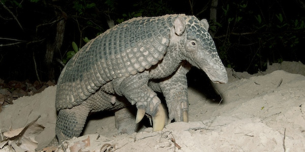 These shy creatures rarely leaves their homes to say hello, despite their size! Giant armadillos are covered in armour-like scales and have scary looking claws on their front paws. When they sense danger, they quickly use their nails to dig a hole and hide! Despite hiding from humans, giant armadillos are endangered because people are destroying their homes for farmland. Humans use their habitat to make raw materials, like sugar cane, which they use instead of oil.