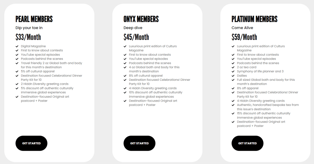 For quantity, subscriptions are one option. Book boxes exemplify premium experiences over classical purchases. Companies like Illumicrate and Woke Babies send books to subscribers with additional materials. They combine the childhood joy of receiving post, a hunger for new stories, and a surprise. One emphasises fandom and genre merchandise while the other specialises in recreational learning products; both use additional elements in their marketing strategy. Both add to the products they offer to distinguish their business from ebooks or traditional retail. Certain magazines echo this decision. Doni Aldine of CULTURS and Rory Brown of AgriBriefing recently discussed how their subscriptions have diversified from ‘just’ magazines. Aldine spoke of her company’s luxury, experiential product packages featuring cultures highlighted in the print issues; Brown revealed the market research leading to legal and consulting services being added to his magazine subscription model. Here publishers recognised adding to their product with recognisable, memorable benefits meant customers would pay more for these products than cheaper competing goods.