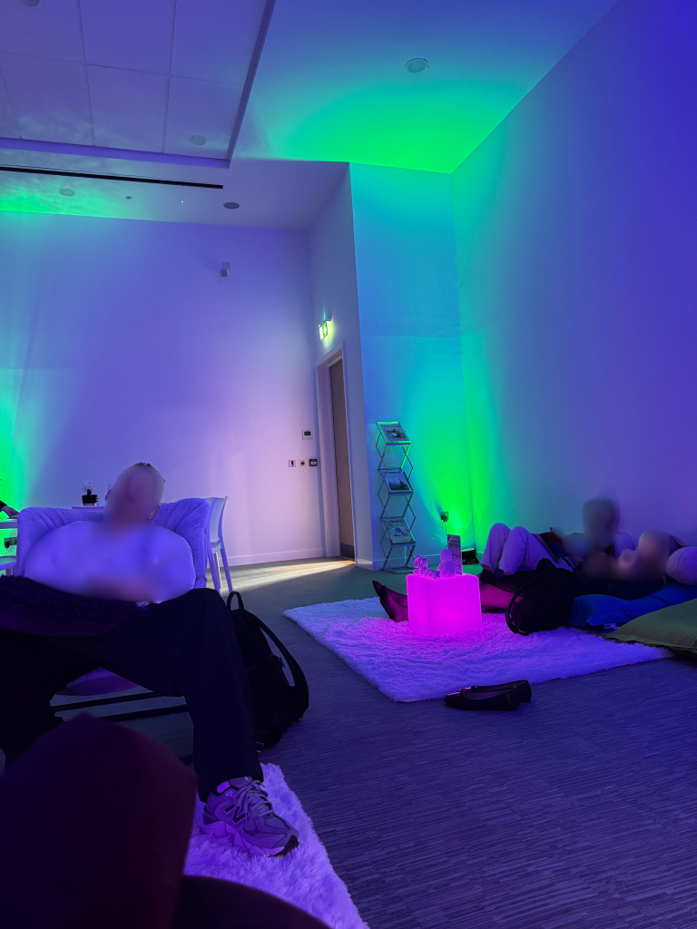 The LBF provided a sensory room, away from the crowds and noise. They collaborated with a company called Event Well, which specialises in creating safe and calm spaces at big events (EventWell, 2019). The room was clearly labelled from the outside and on maps. It was a small, carpeted space with soft, dimmed lighting to ease the sense of overwhelm. Next to reclined cushioned chairs, there was space to lie down and recharge before the next meeting or panel. They even provided weighted blankets, stim toys, and magazines for those who wanted them. A trained staff member was available in case extra assistance was needed. The room was in high demand each time I used it. LBF introduced this room in 2024 (Garanasvili, 2026), while FBF followed in 2025, offering two rooms in different areas (Frankfurter Buchmesse, 2026). However, during my visit to the FBF in 2025, I could not find either room. They were neither advertised nor marked on the overall map nor on their service map (Frankfurter Buchmesse, 2025b).